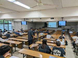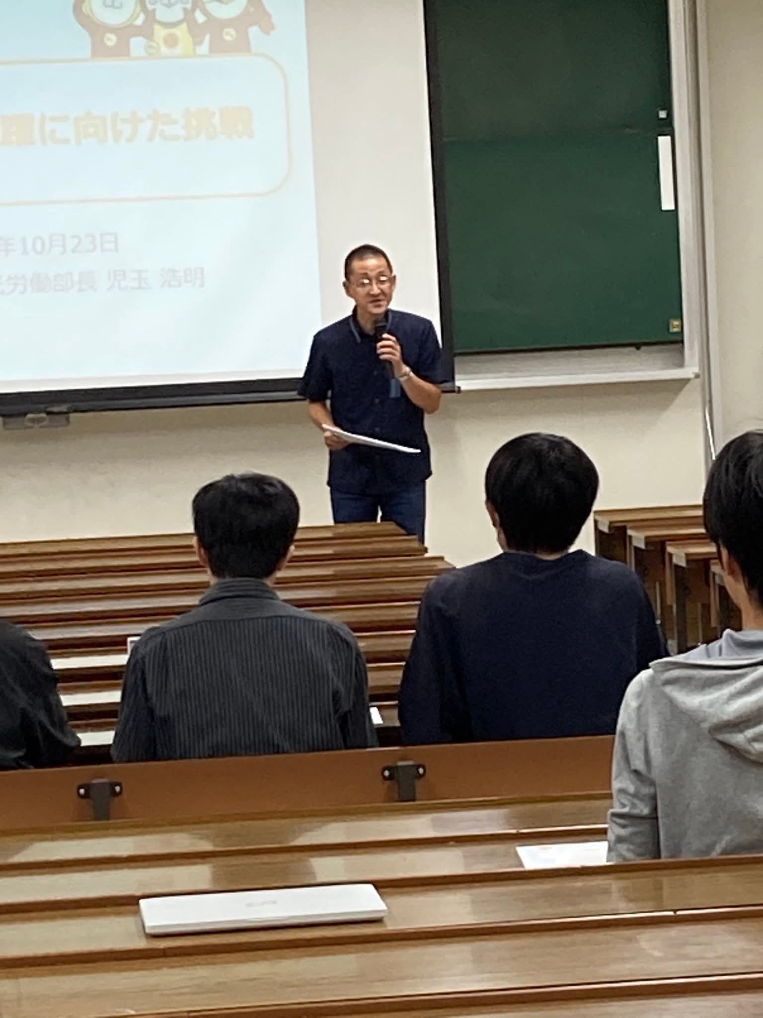 10月23日、宮崎大学において「みやざきの飛躍に向けた挑戦」と題して、宮崎県商工観光労働部長 児玉浩明様による講義が行われました。