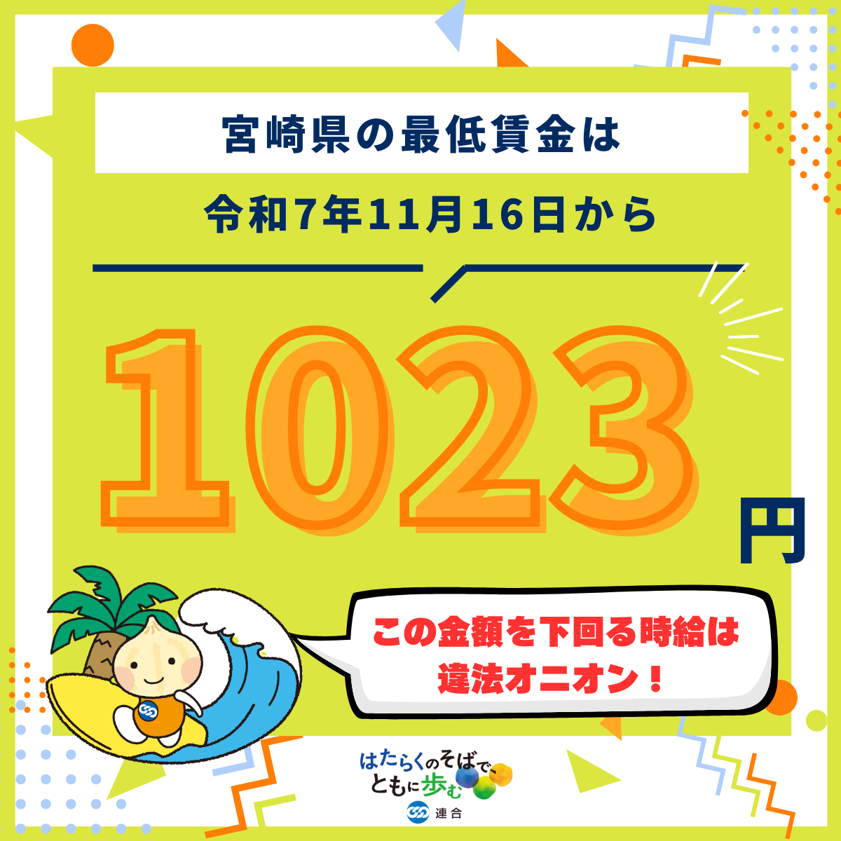 本日11月16日から宮崎県の最低賃金は『1023円』です。