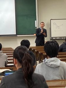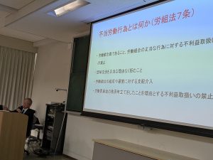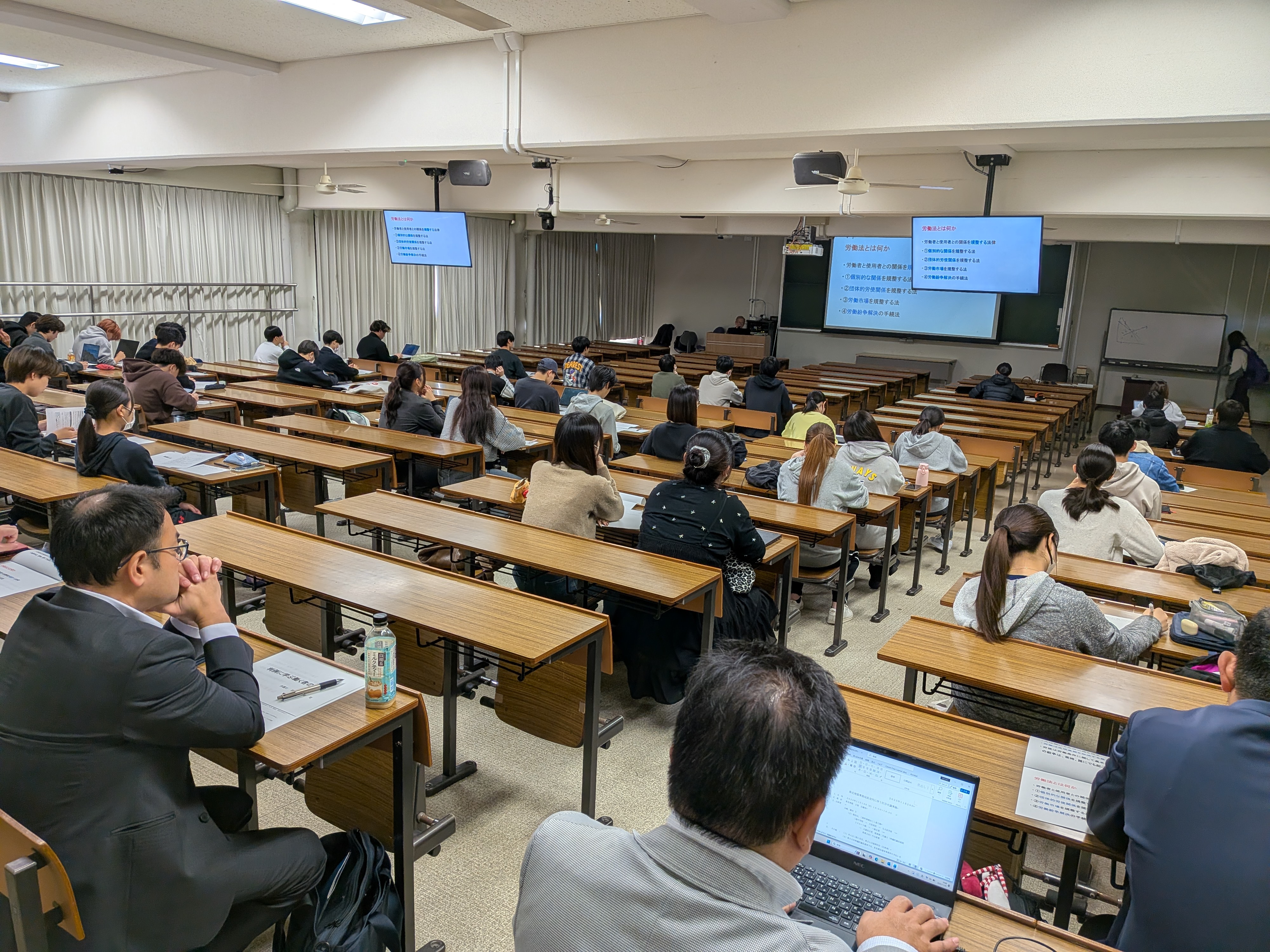 11月20日、宮崎大学において「判例に学ぶ働くものの権利」と題して、弁護士 前田裕司様による講義が行われました。前田先生が弁護されたパワハラ裁判の事例紹介等をしていただき、普段弁護士と接する機会のない学生にとって、有意義な時間となりました。