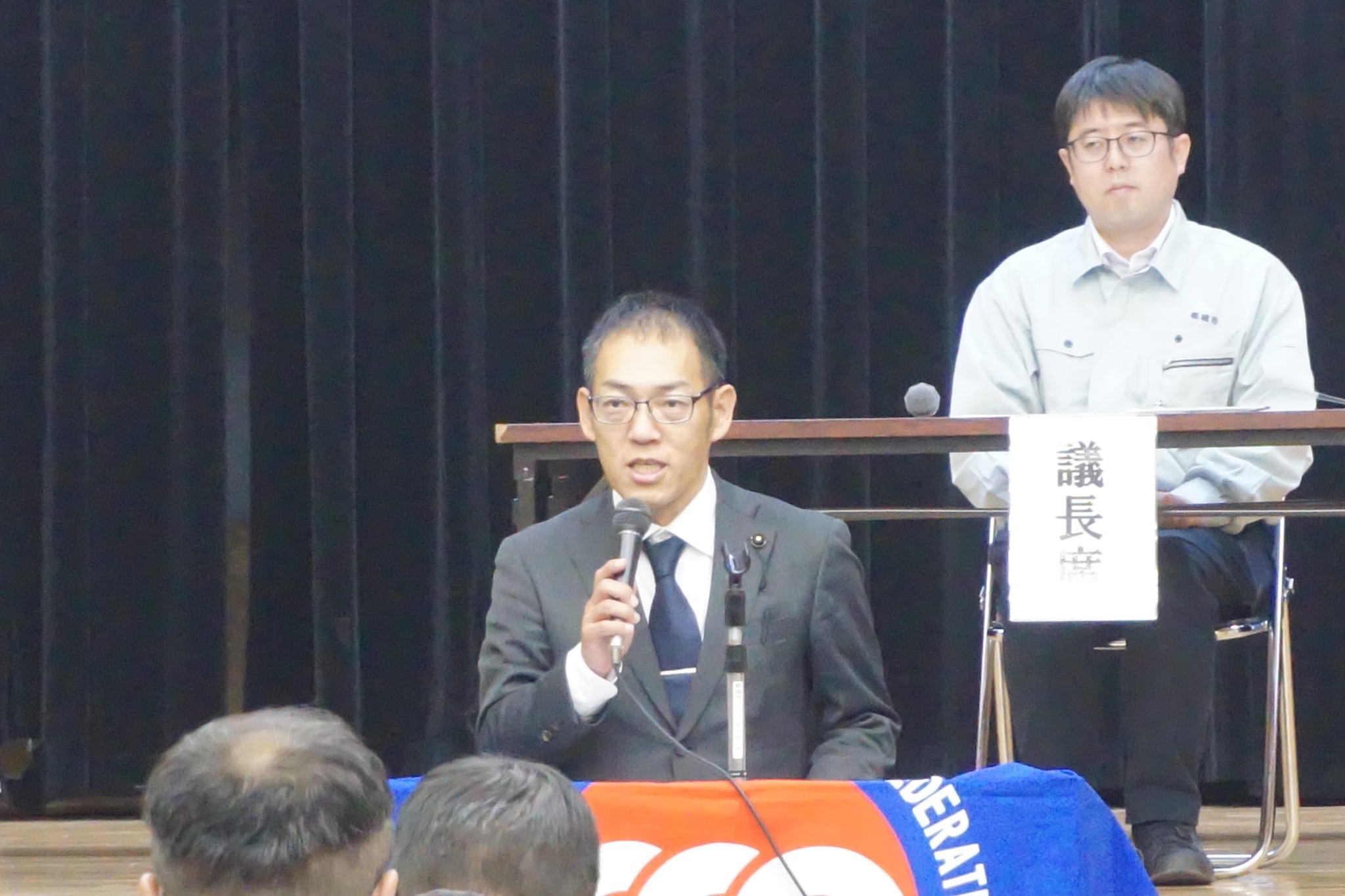 2025年度の取り組みの総括、2026年度の運動方針・活動計画等の取り組みが承認されました。直近の、2026年1月18日公示・25日投開票の日程で行われる都城市議会議員選挙において、連合宮崎の推薦する2期目の羽田野徳(のり)寿(ひさ)さんと新人候補の田下勝利(かつとし)さんの当選に向けた取り組みとして、都北地協一致団結し勝利することを確認しました。