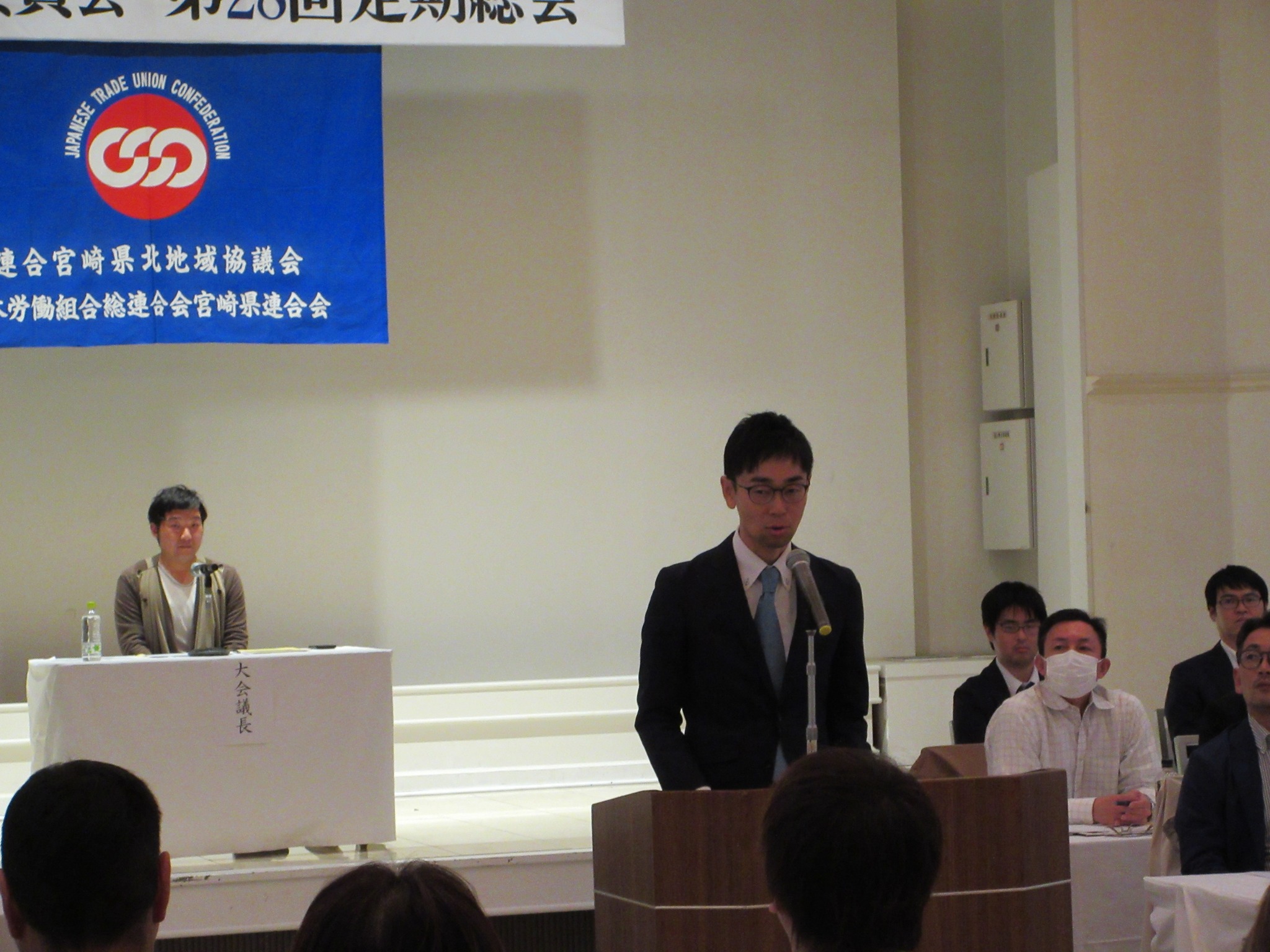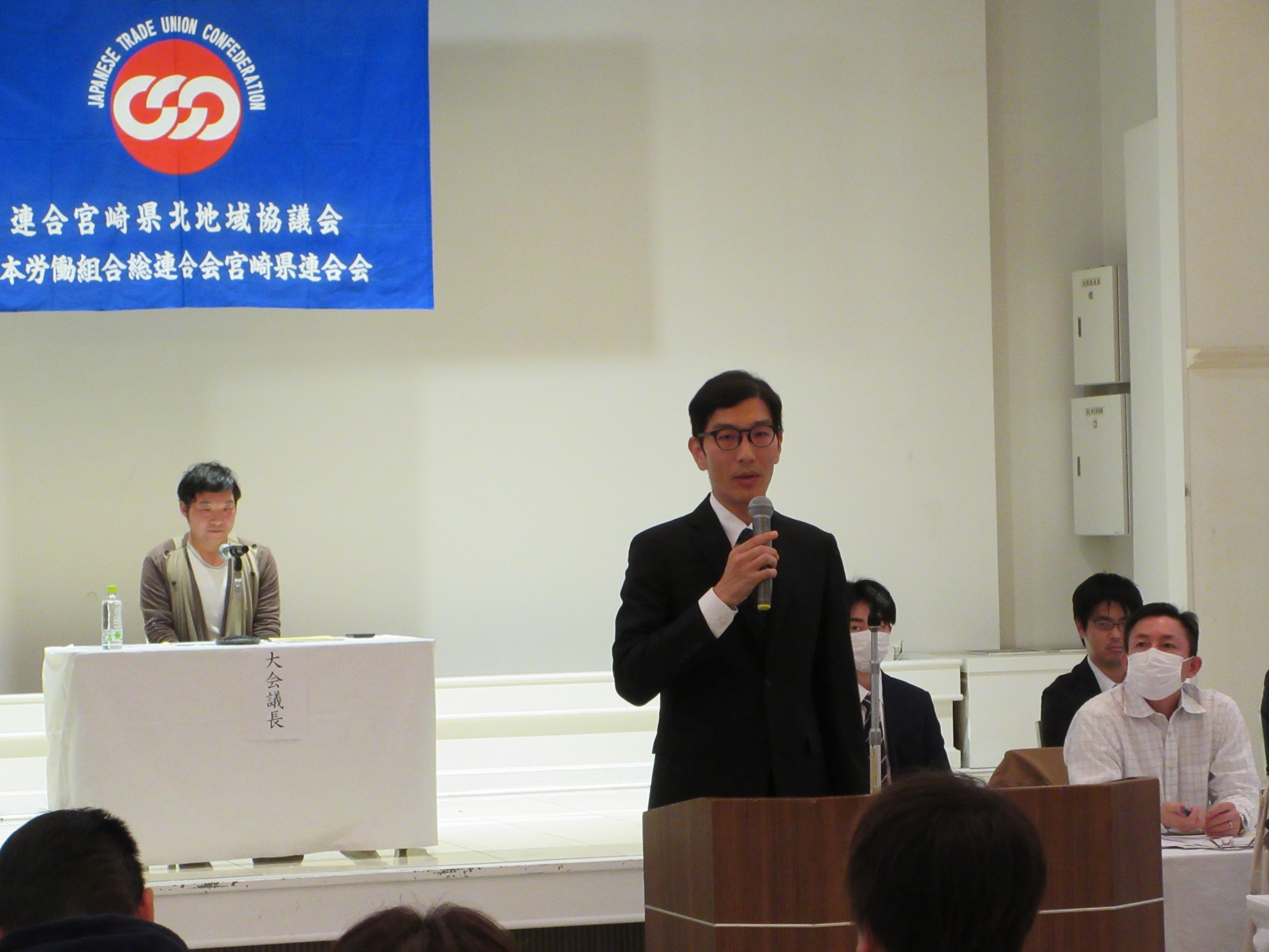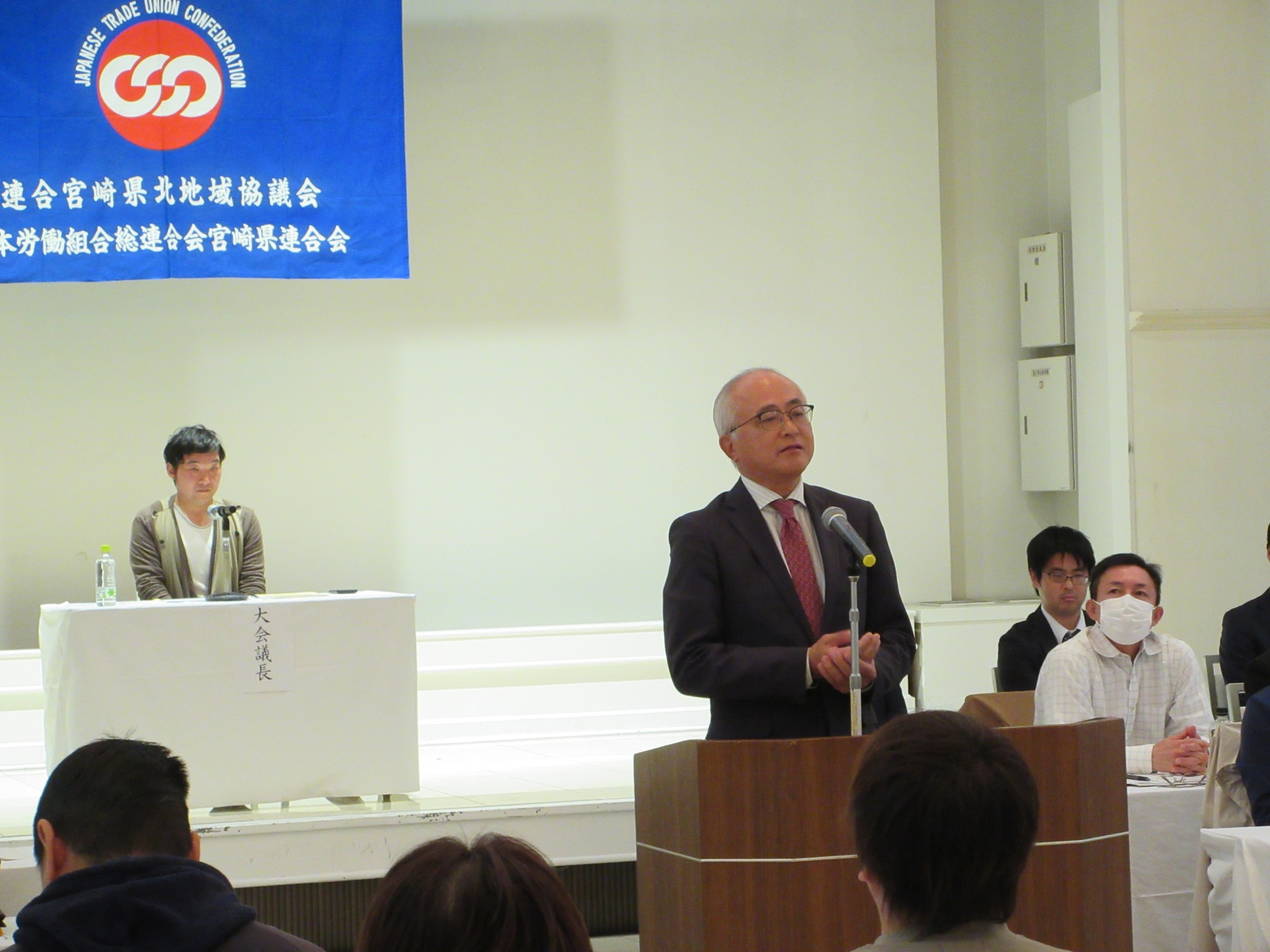 ご来賓として連合宮崎副会長 川﨑哲伸様、、延岡市長 三浦久知様 他計9人のご出席をいただきました。