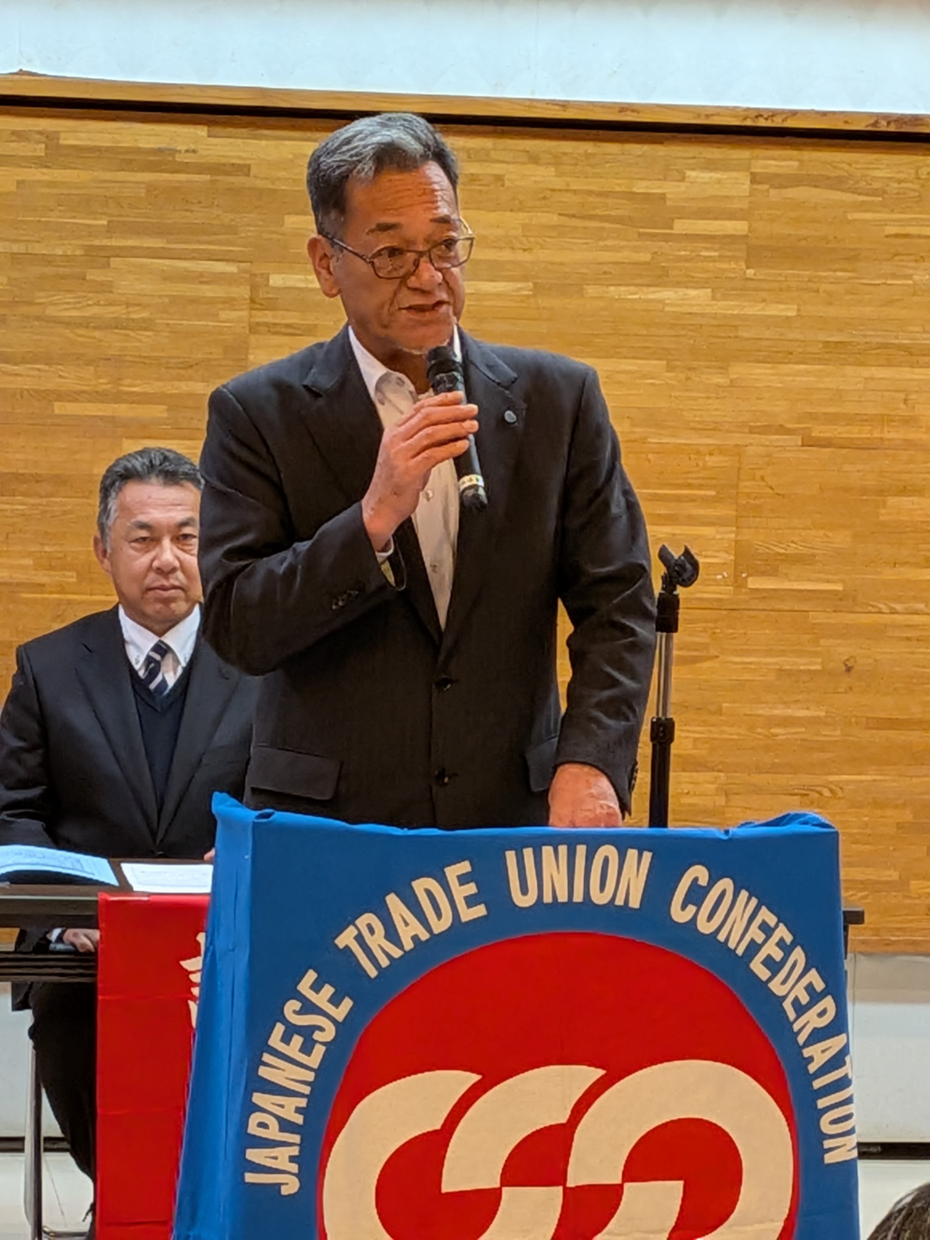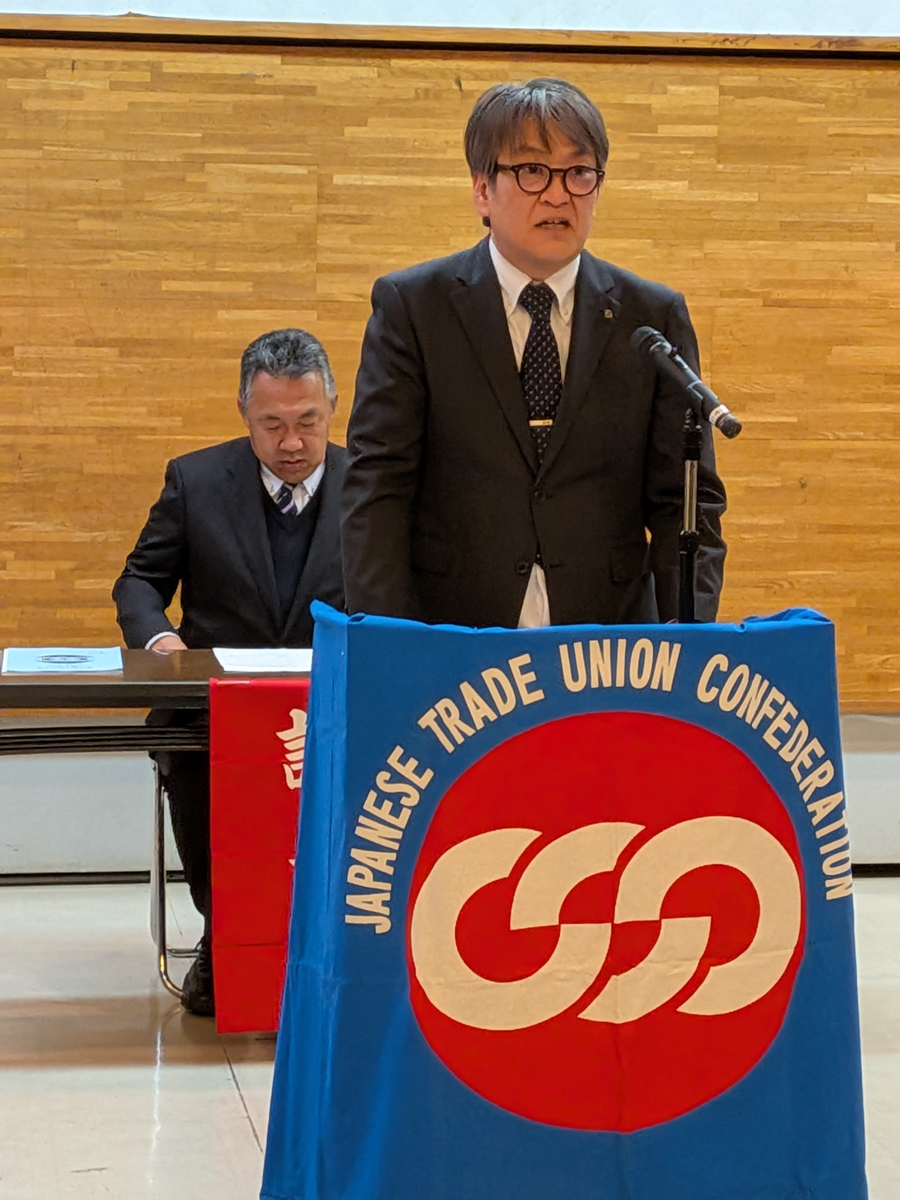 第27回参議院選挙、2026春季生活闘争、組織拡大の実現等について力強く述べました。