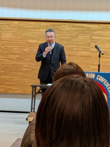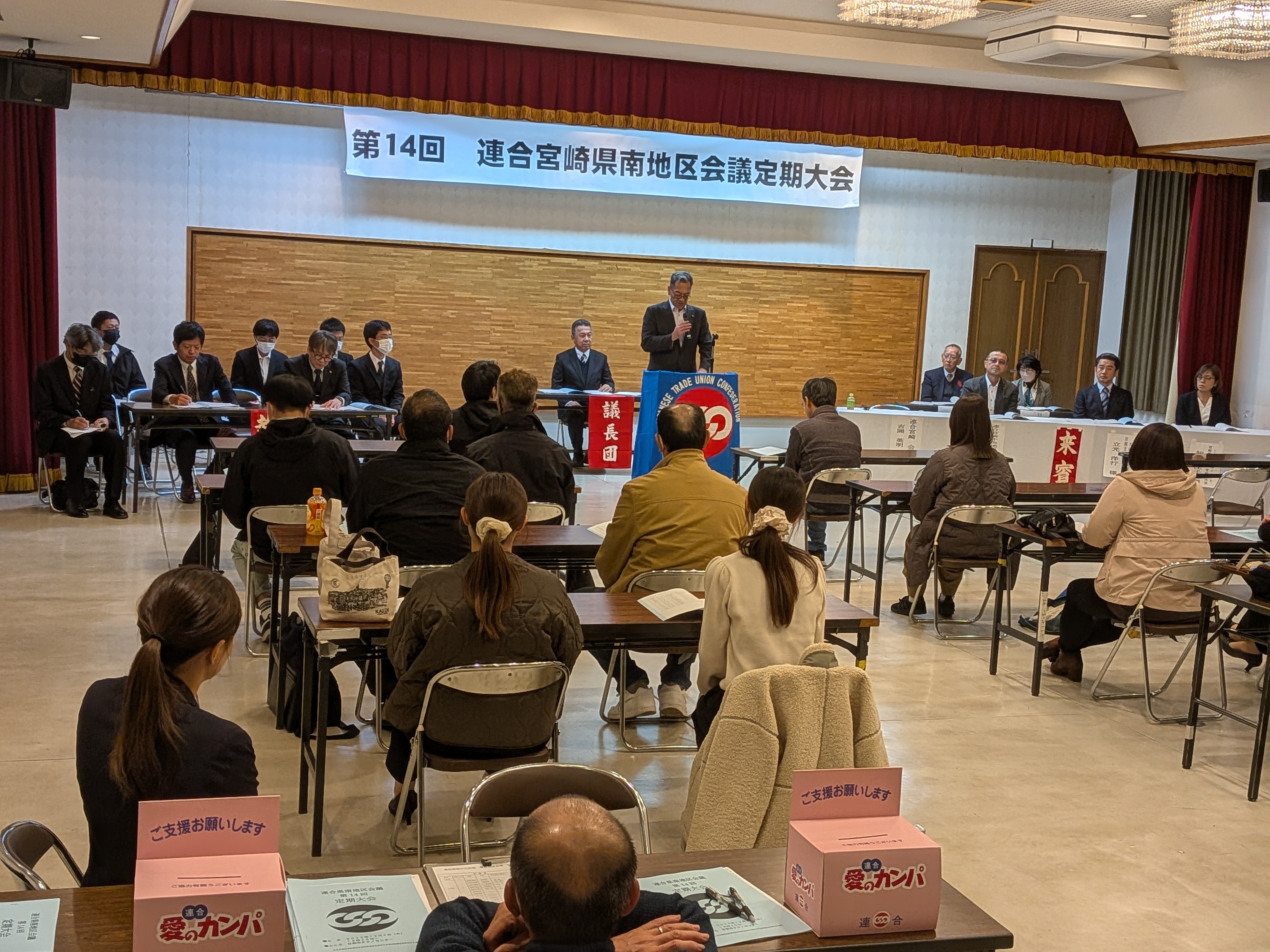 12月4日、日南市テクノセンターにて開催しました。主催者を代表し中井議長(紙パ連合)から、