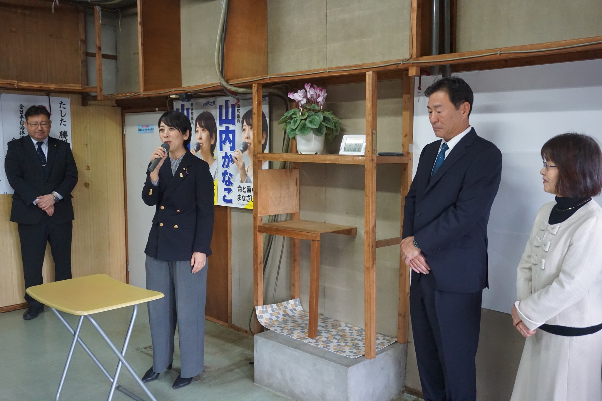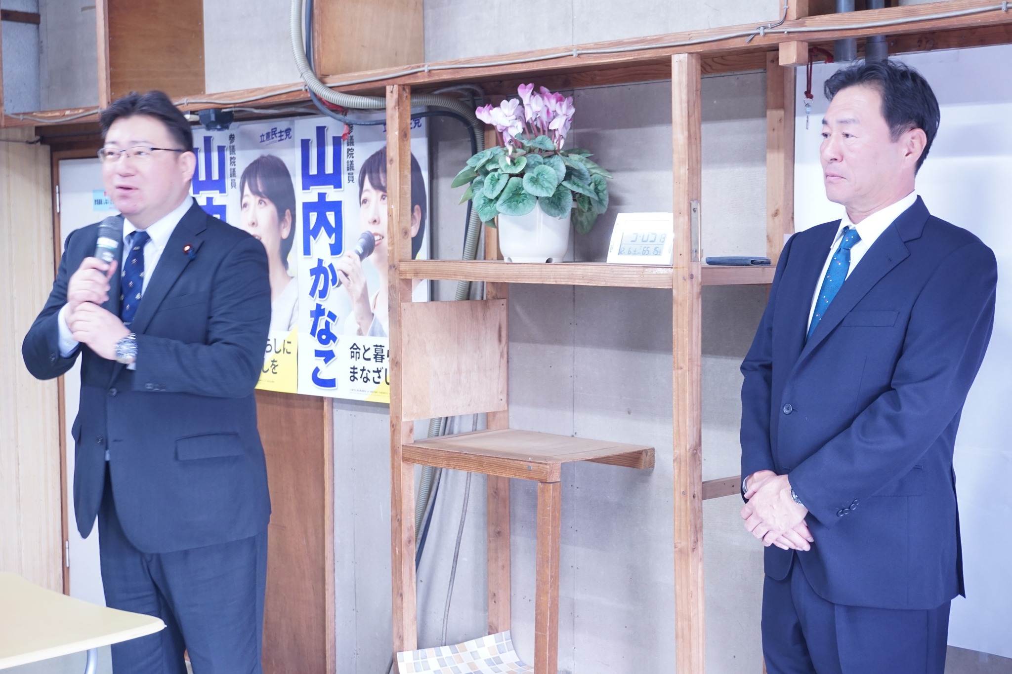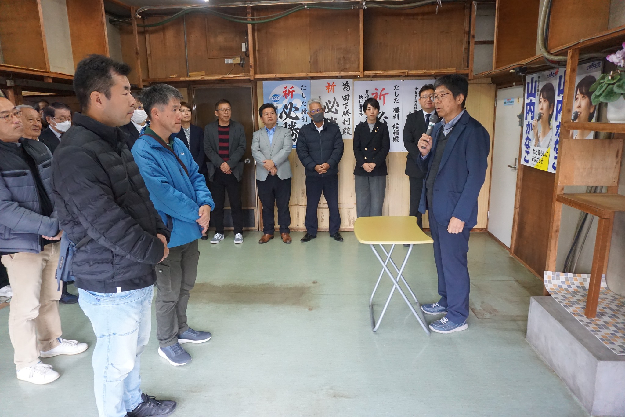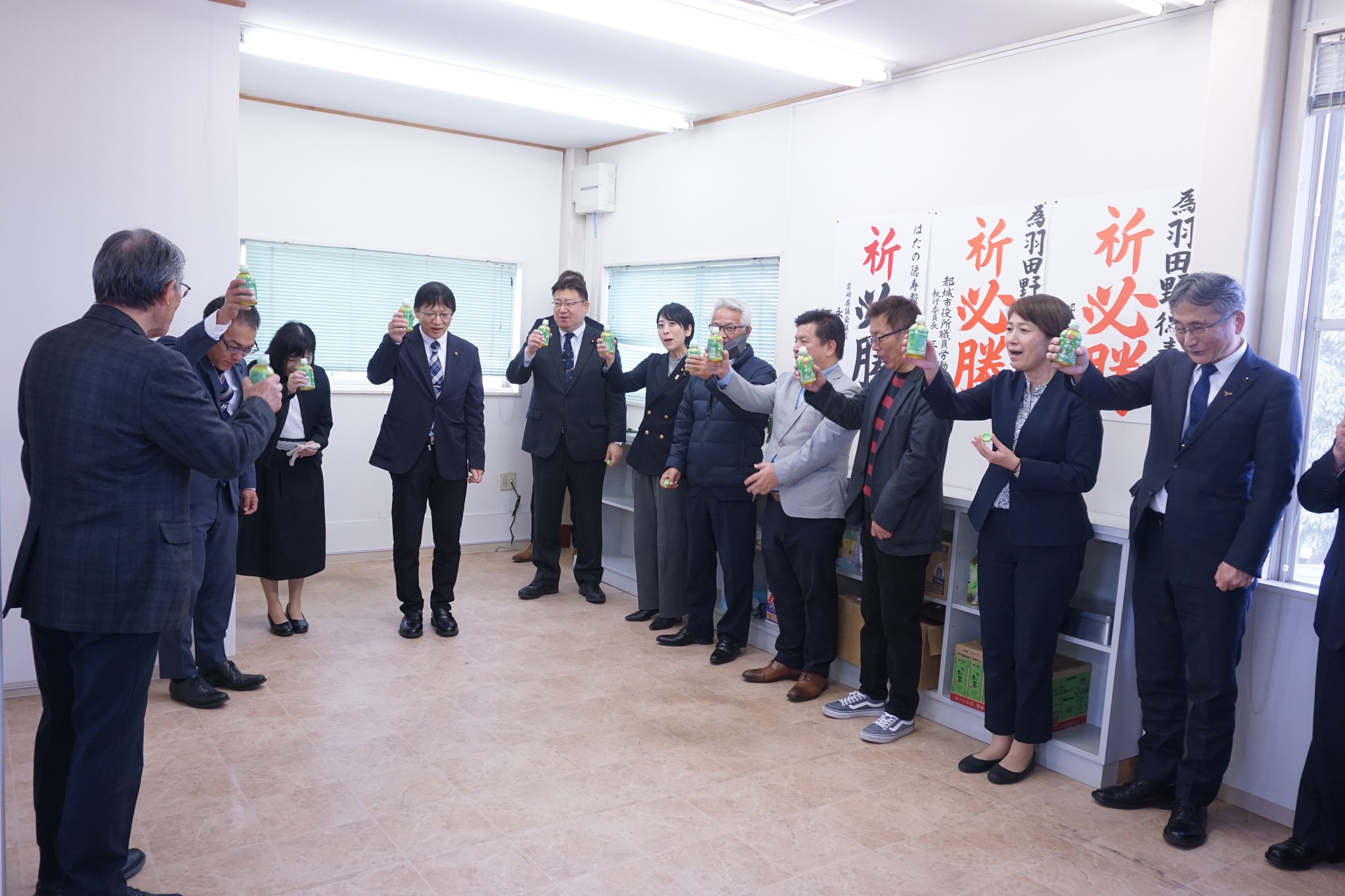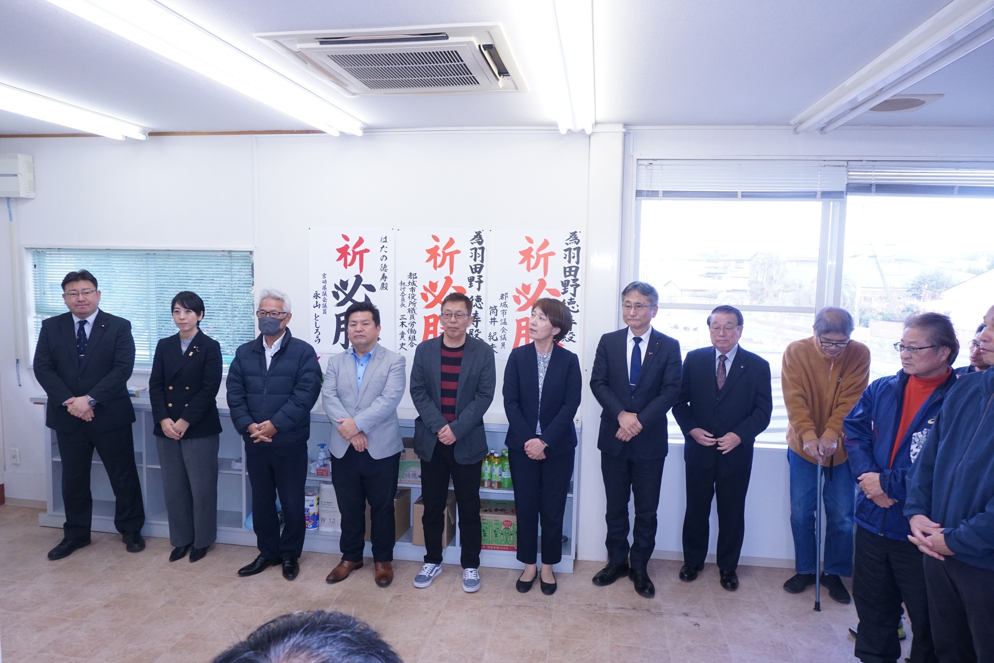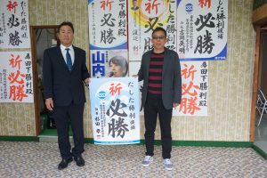 2025年12月6日(土)、13時30分から2期目の「羽田野徳寿」現市議、15時からは新人「田下勝利」候補予定者の事務所開きに、多数の支援者が集い必勝を祈念しました。