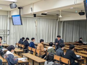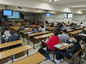 12月25日、宮崎大学において「宮崎県の雇用情勢と宮崎県で就職することについて」と題して、厚生労働省宮崎労働局 職業安定部 向田俊哉様による講義が行われました。