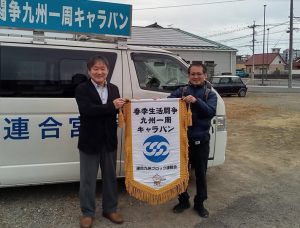 2月10日(火)連合宮崎県北地協から連合宮崎日向地協にキャラバンフラッグが引き継がれました。